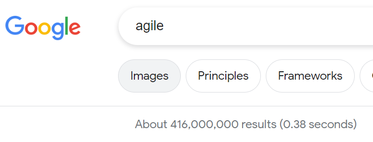 "agile" 은 구글 검색가능한 글 수는 4억 건이 넘습니다.
